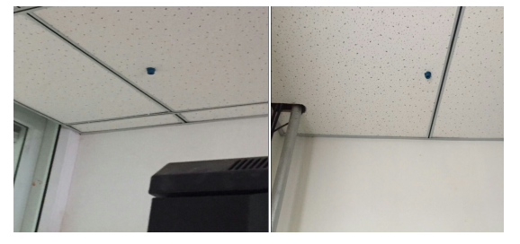 3、固定二合一探测器。将二合一探测器固定在天花板上,将电线预留在天花板里。