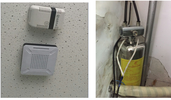1、在站房的左上角和右上角两个位置固定灭火器瓶体,用******粘贴将其固定;左上角的灭火器瓶体控制左侧两个机柜,右上角的灭火器瓶体负责控制整个站房。
